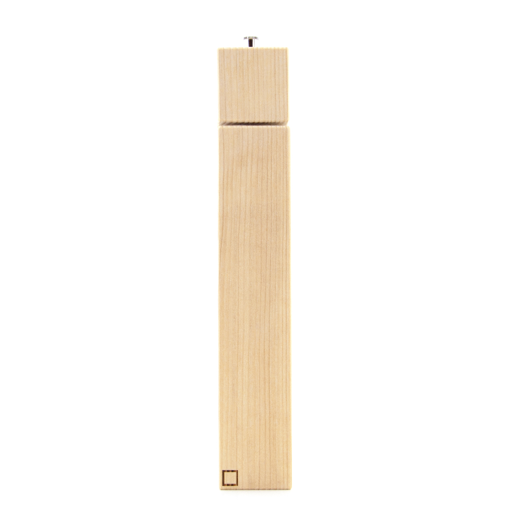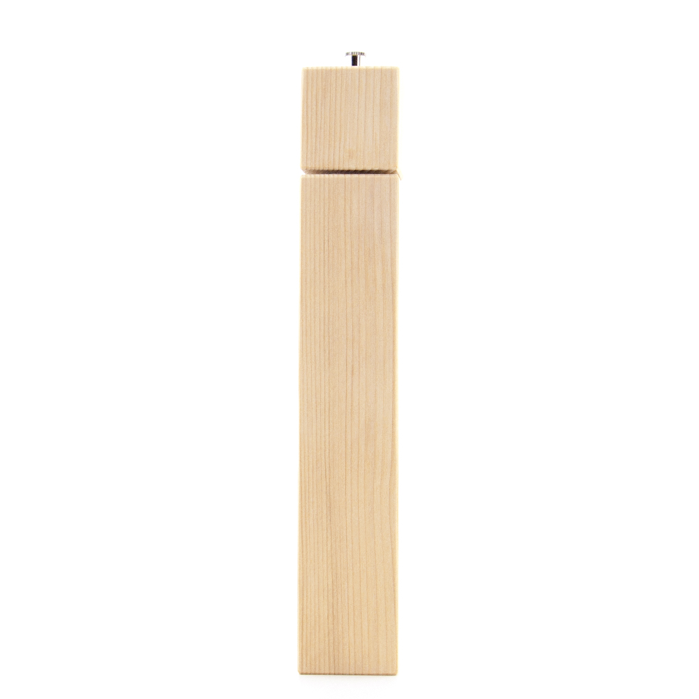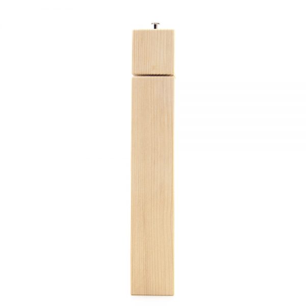 Die EINMAHLIG Pfeffermühle aus heimischen Weißtannenholz wirkt sehr elegant und natürlich. Die Maserung des Holzes ist gleichmäßig und dezent.